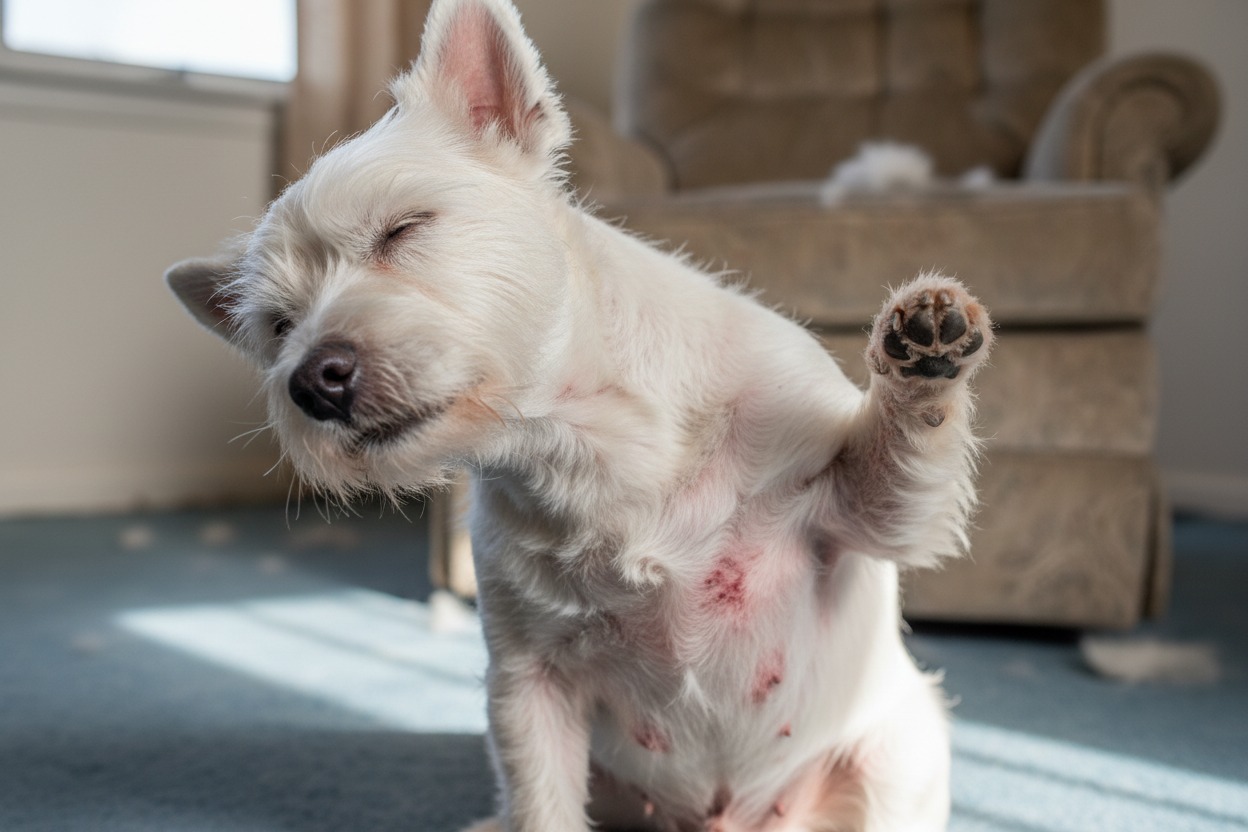dog scratching due to flea infestation